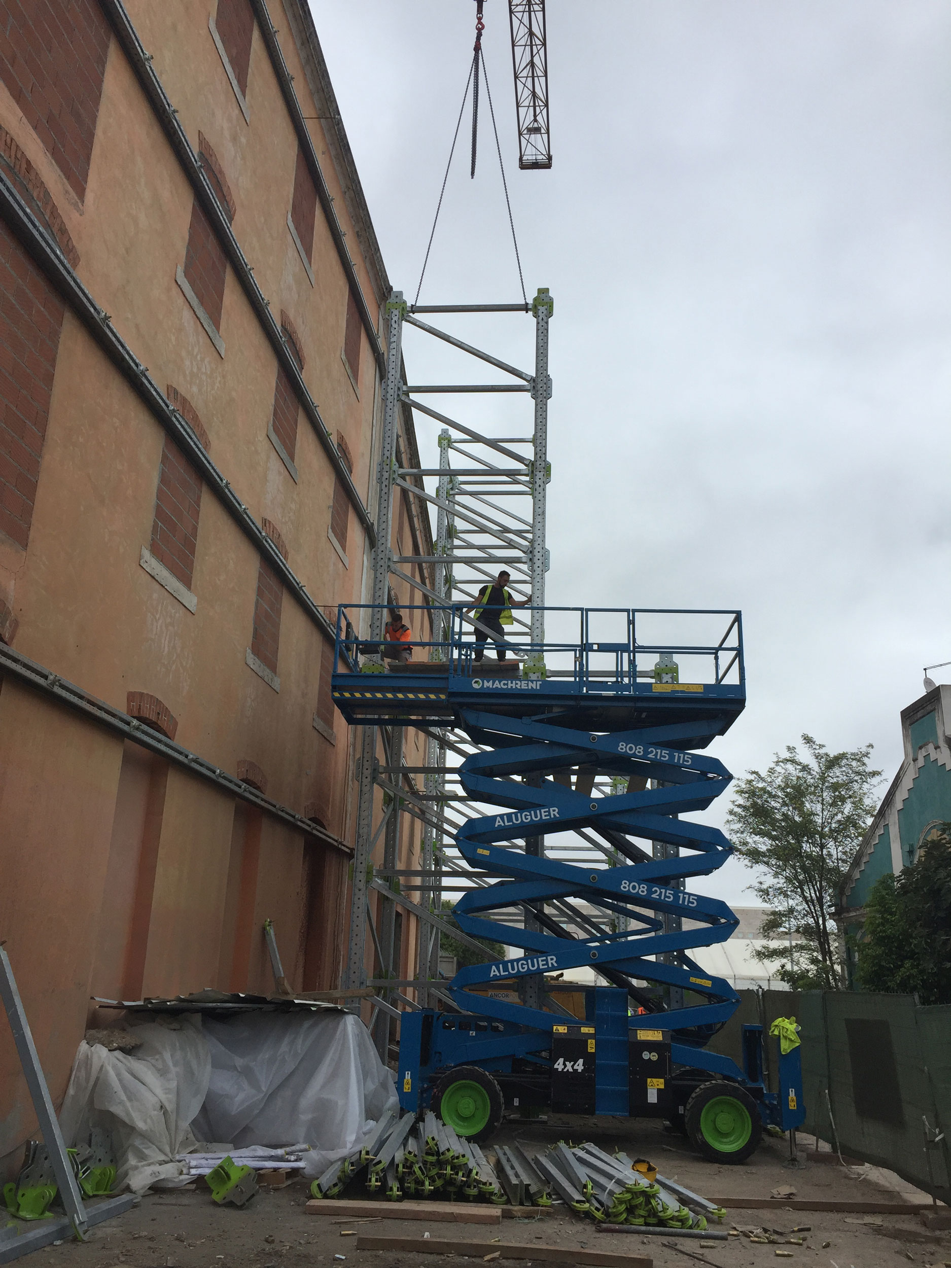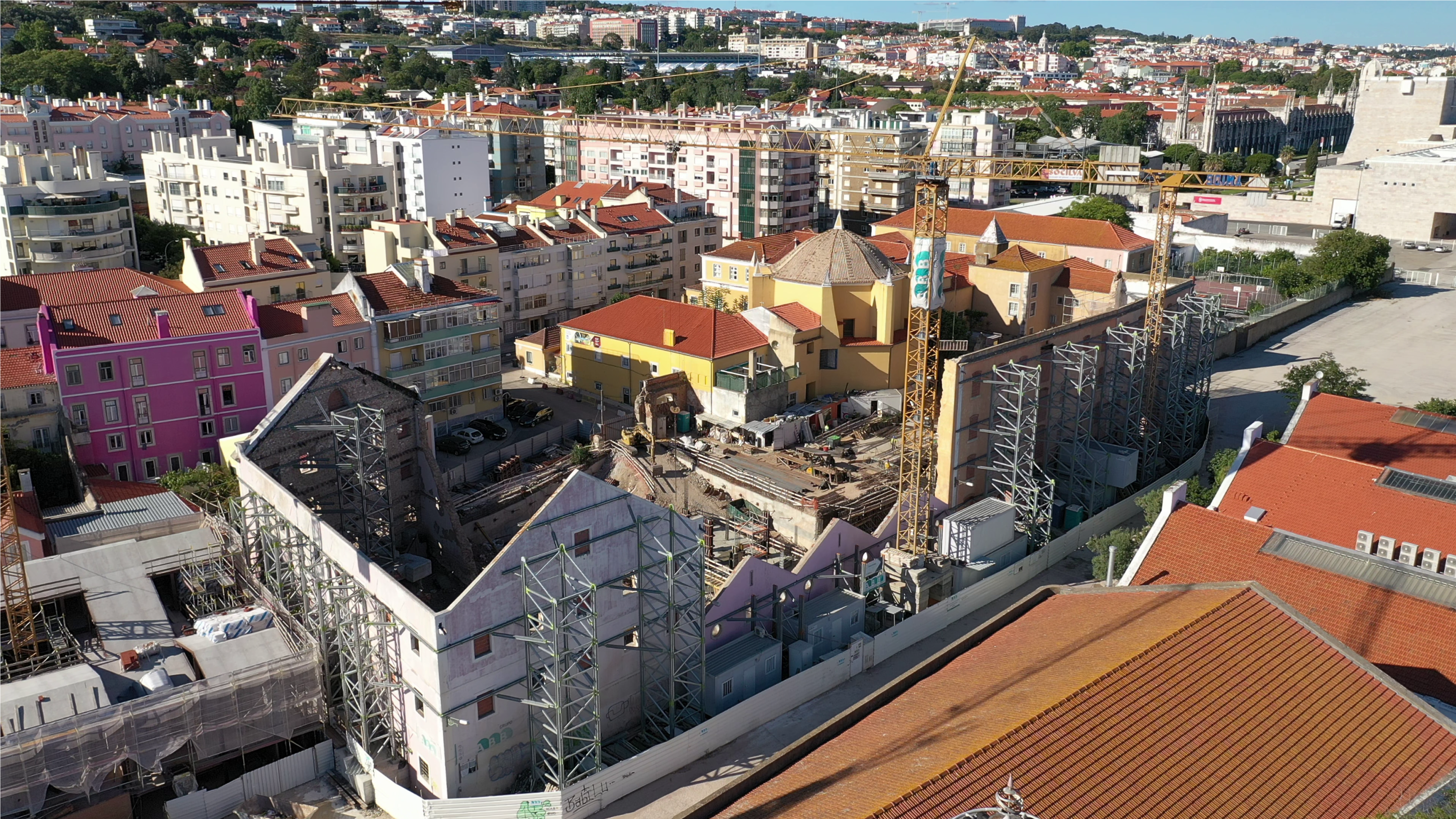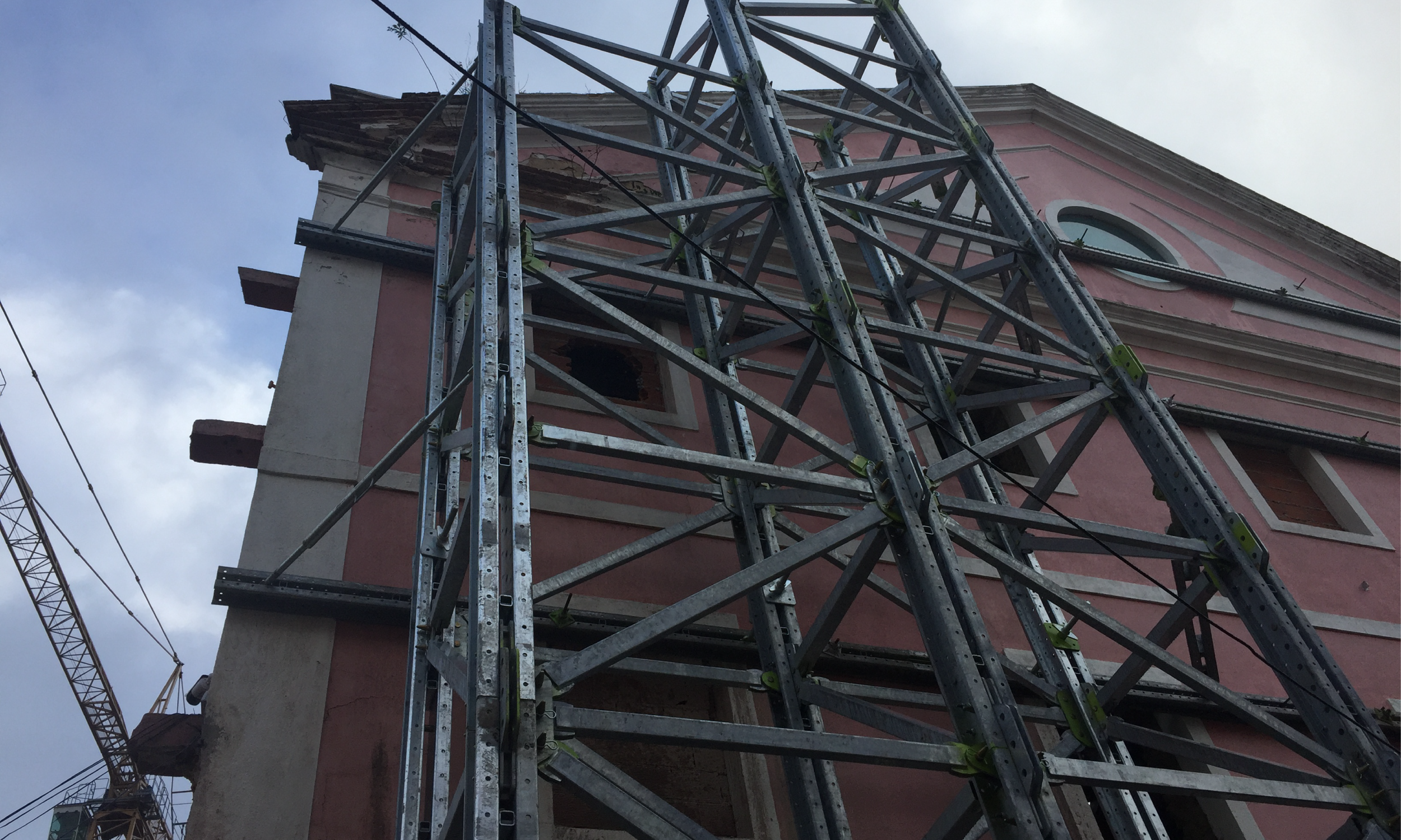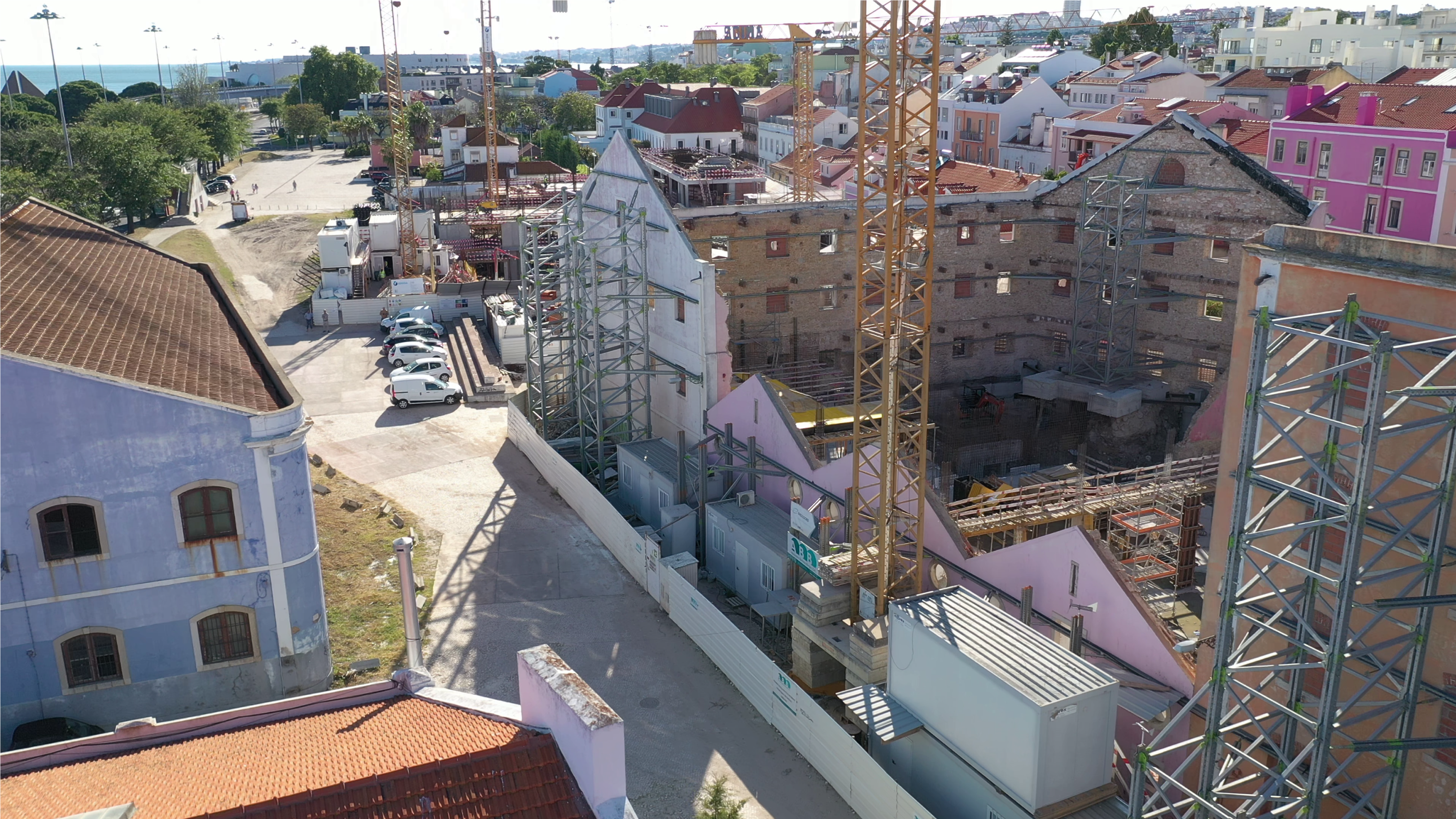 Elaboração de projeto, montagem e desmontagem de contenção de fachada de 3 edifícios e um muro. Foram montadas num total de 13 torres de contenção com material HD e 5 torres de contenção com material LT. Foram utilizados 125.000kg de perfis metálicos e respetivos acessórios.